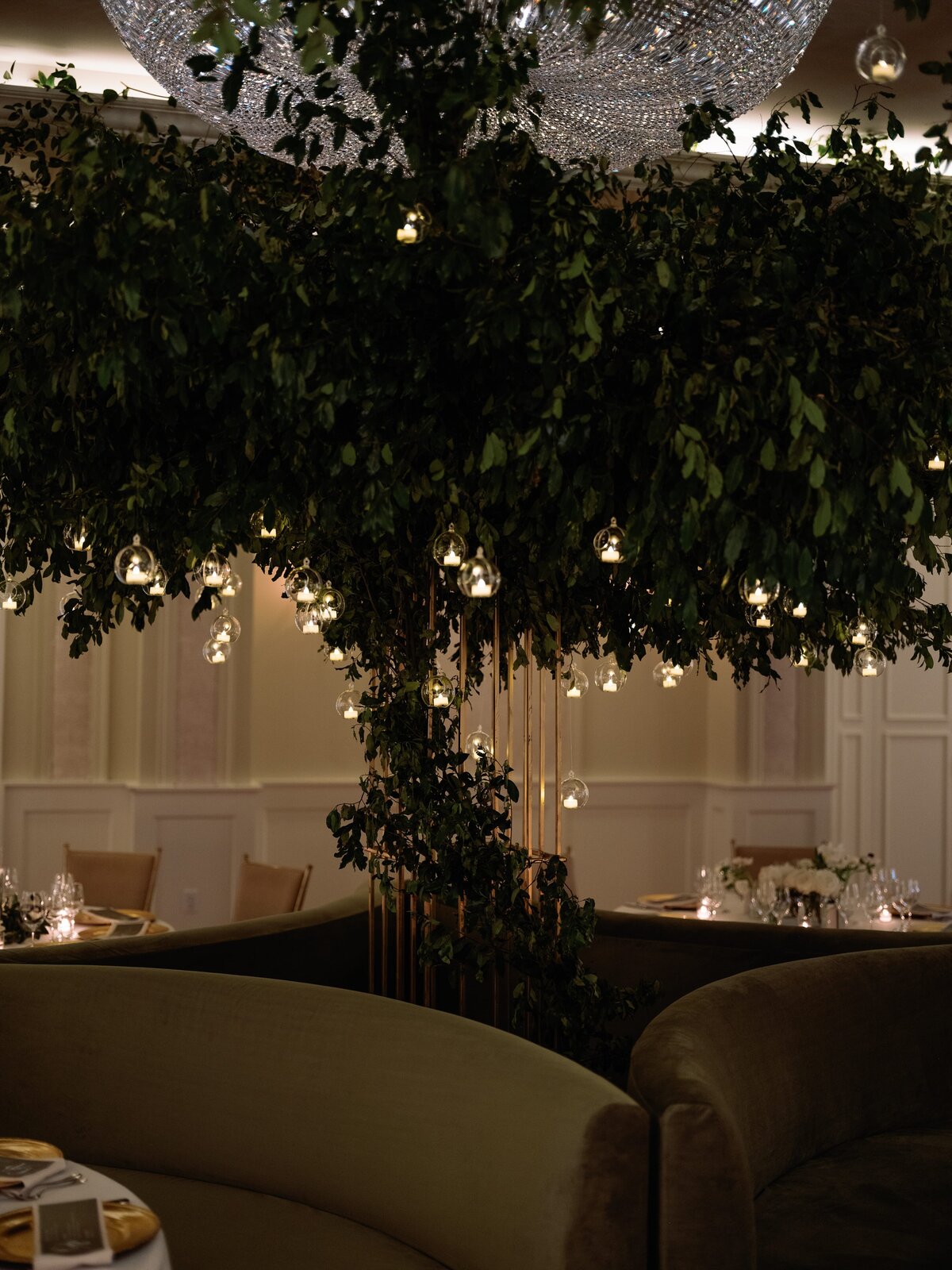 The reception at the Oklahoma City Golf and Country Club was transformed into a romantic, enchanting space that perfectly captured the couple’s vision. Lush greenery cascaded from the ceiling, creating a canopy that brought an immersive, natural feel to the room. The soft, warm glow of countless candles illuminated the space, casting a flickering light that added to the intimate and cozy atmosphere. Thoughtfully arranged seating encouraged close conversations and gatherings, allowing guests to connect in a relaxed, elegant setting.