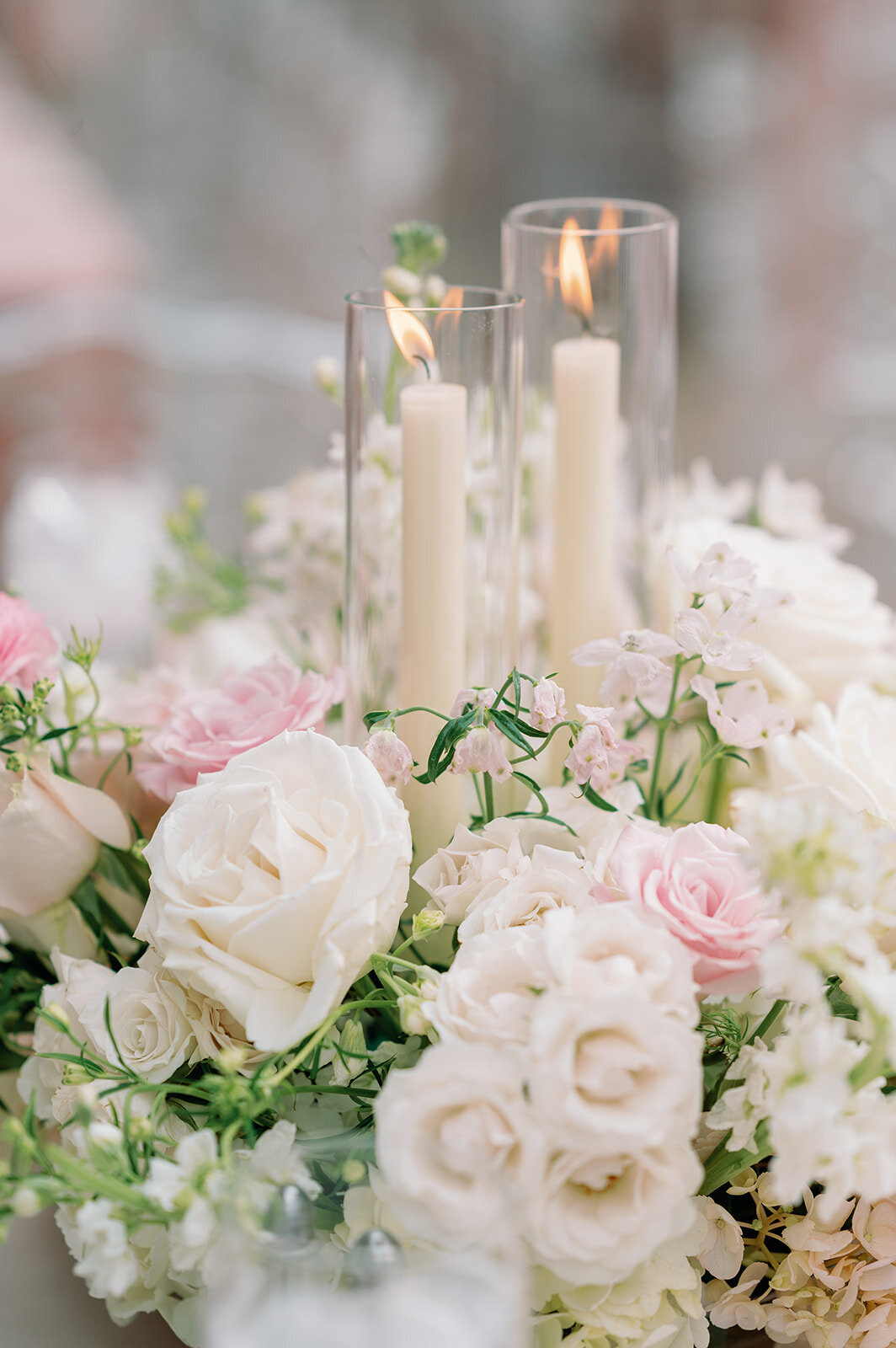 The head table, adorned with flowers that burst like firecrackers, set an energetic tone for the evening. As night fell, the dance floor was packed with joy, and every detail, from the pink accents to the lively music, contributed to an unforgettable celebration surrounded by love and laughter.