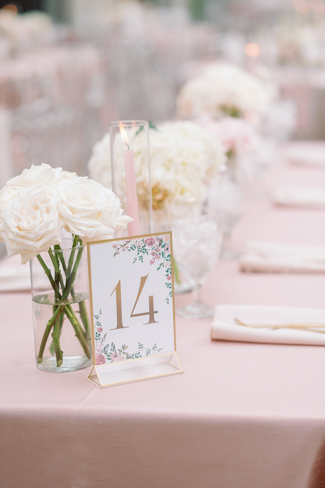 The wedding day was a dream come true, overflowing with delicate details, a lush garden ceremony, and a celebration that seemed to get better with every passing moment. The design, incorporating increasingly vibrant shades of pink, was embraced by the groom, Russ, adding to the day's specialness. The ceremony, set in a beautifully lush garden surrounded by vibrant greenery and soft blush blooms, was perfectly cozy despite a rainy forecast, with breathtaking photos captured before the rain arrived.